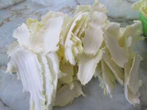 芯の部分に分けました。包丁とかは使わず、手でバリバリとほぐしました。