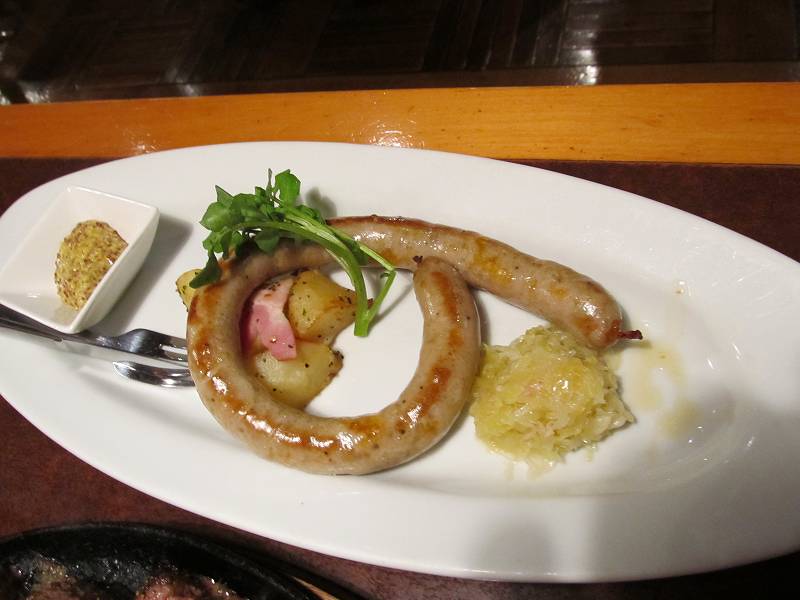 ソーセージです。付け合せのザワークラウトは、ちょっとだけで少し残念でした。