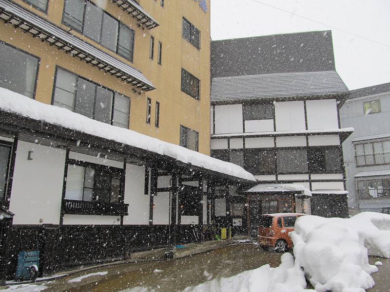 温泉街は当然雪かきされていますが、やっぱり激しく雪は降っています。
