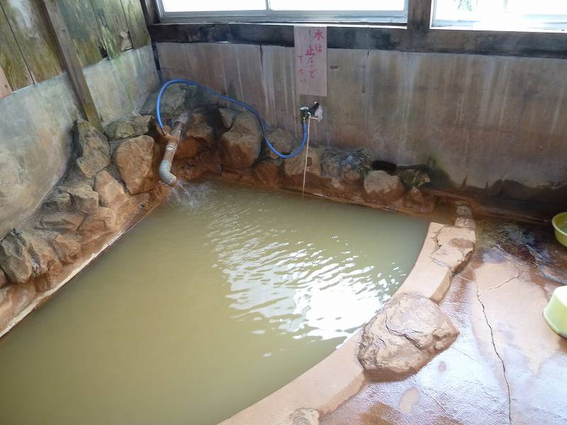 年季の入った建物の中温泉に向かうと、浴槽が2つありました。「ひとつが『マウント磐梯』の源泉、もうひとつが中の湯独自の源泉だ」と入浴していたおっちゃんが言っておりました。いずれも酸性ではなく、重曹系のおだやかな泉質です。わずかな油臭もあり、東鳴子温泉を連想させました。