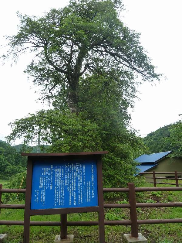「やくせん」の近くにあった天然記念物「小原のヒダリマキガヤ」です。なんだか、全国で(ここ含め)4ヶ所でしか確認されていない種類なんだとか。私はよくわからなかったのですが、樹木に詳しい人だとこれを見て「ひゃ~っ! 珍しい!!」とか思うんでしょうか?