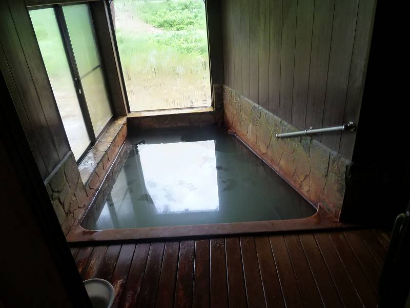 浴槽は比較的小さいのですが、表面に油が浮き、塩っぱくて鉄分多くて泡も出るという、凄い温泉です! 温度はややぬるめ(39℃)なものの、今の時期だと悪くありません。これは泉質にこだわる人なら、ぜひ入って欲しいところだな、と思いました。こちらの記載によると、現在は300mほど引湯しているため、泡付きが昔よりちょっと悪いとの事。昔のお湯に浸かってみたいもんです。
