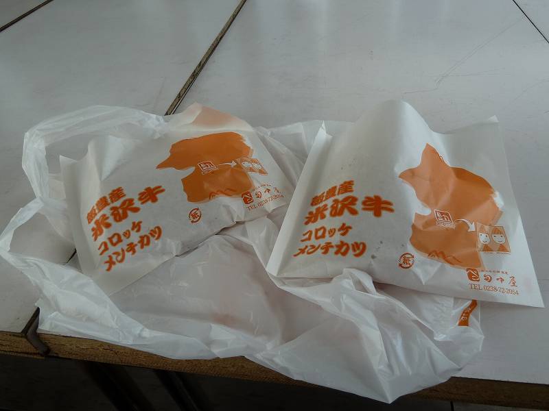 せっかくだから、米沢牛コロッケ(180円)とメンチカツ(250円)を買って食べました。おいしくはありましたが、ちょっと高かったかな? 本物の米沢