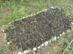 車を止めた板貝地区には、「さいの神」が展示……って、
