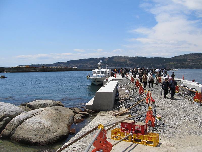 金華山に行くには、鮎川浜●と女川●から金華山の船着場●まで船が出ているのですが、 2年前の震災でダメージを受けて、ずっと運休となっておりました。これが、5月3日より女川からの便が運行再開となった、という事でせっかくだから行ってみよう、という話になったのでした。
