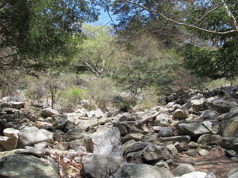 このへん(ってどのへん?)まで上った時点で、帰りの船の時間が厳しい、という事で引き返しました。