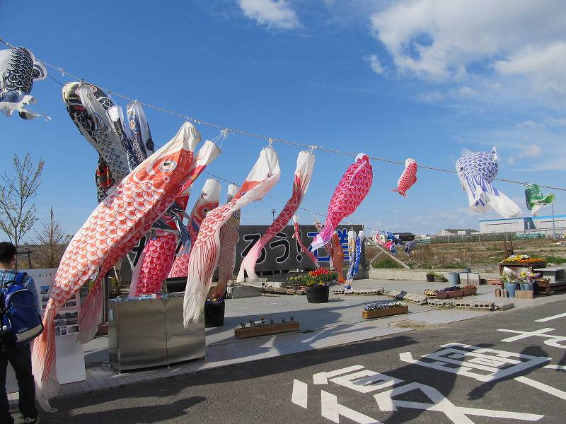 近くに、災害状況の案内が展示してあり、こいのぼりも飾ってありました。