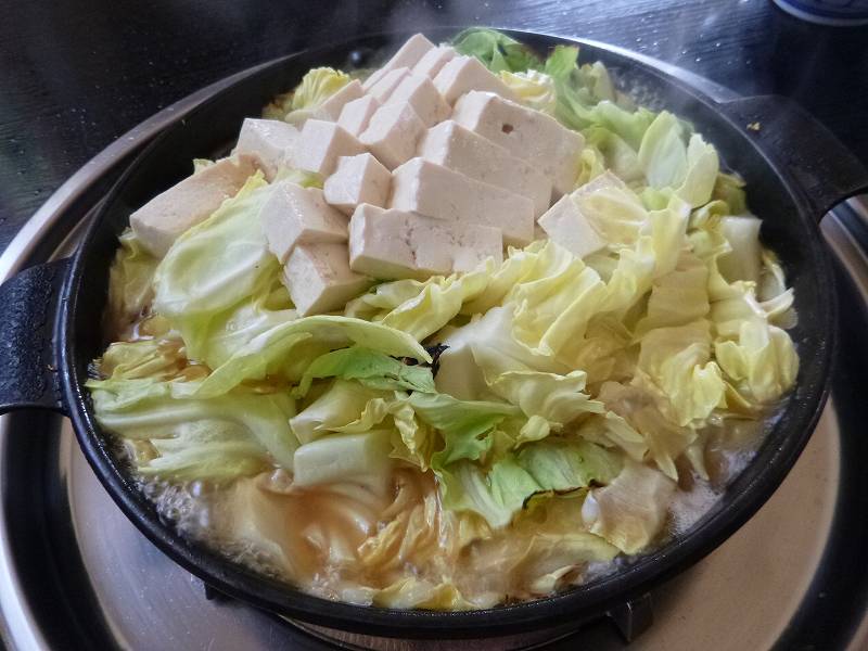 ホルモン、豆腐、キャベツの鍋を、この店特製のタレで頂きます。盛岡市では有名な店のようですが、その話の通りなかなかおいしく頂けました。