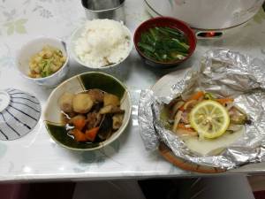 夕食はこんな感じです。魚中心で、なかなか豪華です。