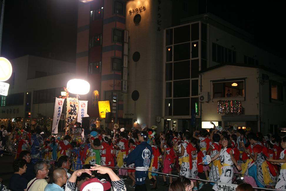 大きい道路に竿燈が立ち並ぶ様子は、なかなか見応えがありました。