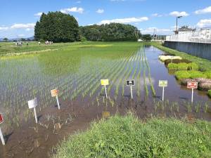 こちらは、鏡石町(地図赤●)の「田んぼアート」です。色のついた稲を使って、田んぼに絵を描くイベントで、日本各地で行われています。こちらでは……